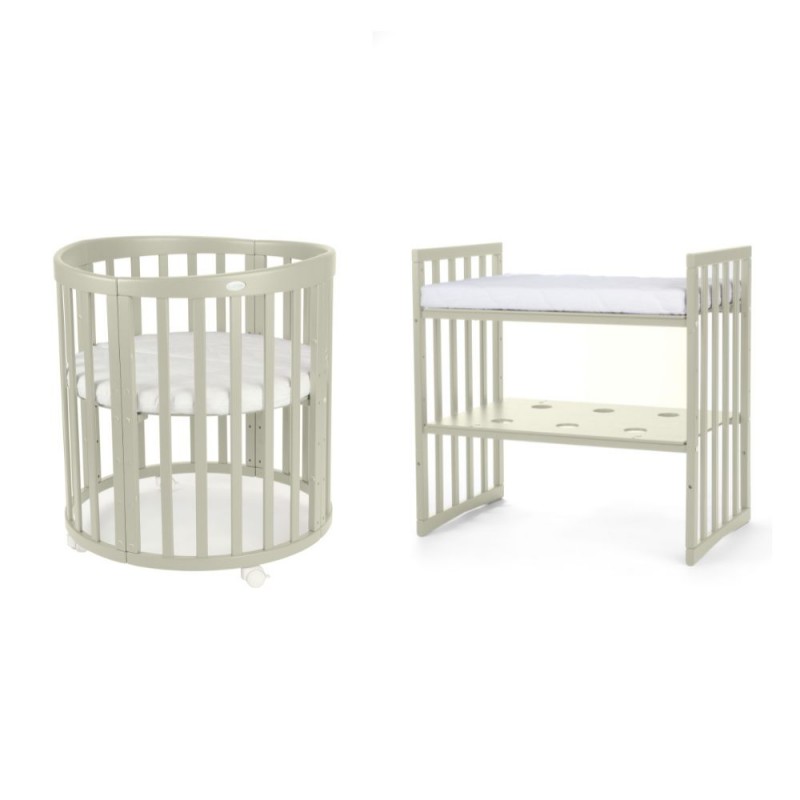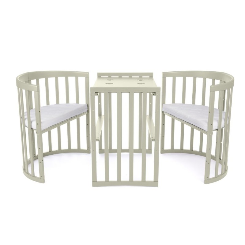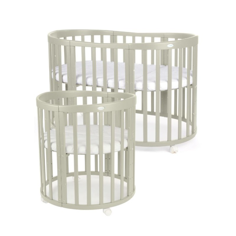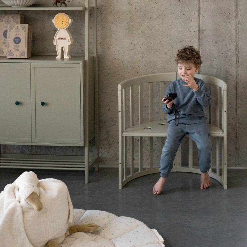 Berço Cama oval convertível, cor Azeitona - 7 em 1 com colchão