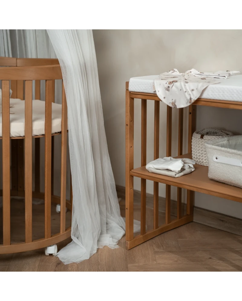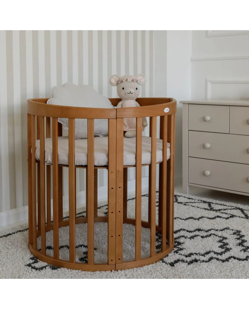 Berço Cama oval convertível, cor Azeitona - 7 em 1 com colchão