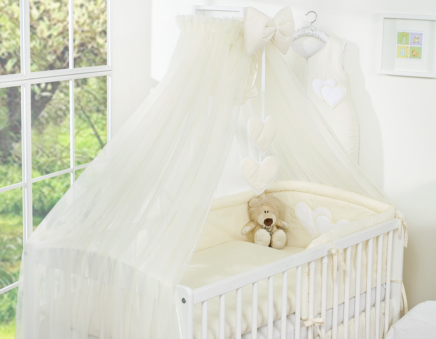 Conjunto de cama bebé 5 elementos coração creme liso