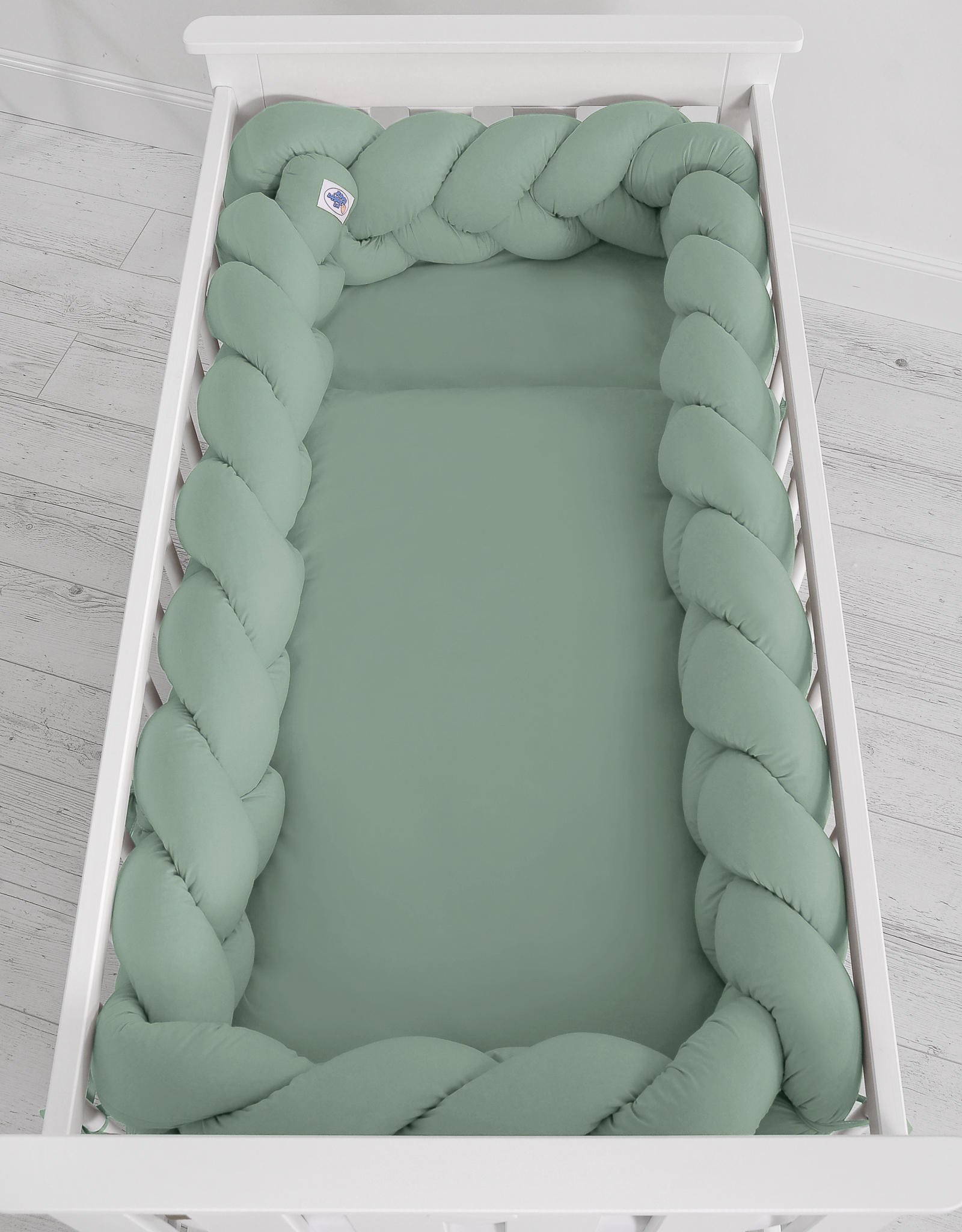 O protetor protege as mãos e os pés do seu bebé de ficarem presos entre os fusos, bem como protege a cabeça e o corpo do bebé de bater nas paredes do berço. A trança pode ser fixada nas barras e permite entrada de fluxo de ar entre no berço do exterior.
